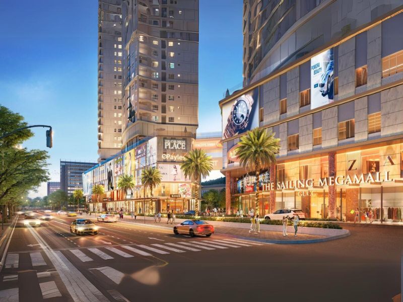 - Khu trung tâm thương mại đẳng cấp, quy tụ nhiều nhãn hàng trên thế giới